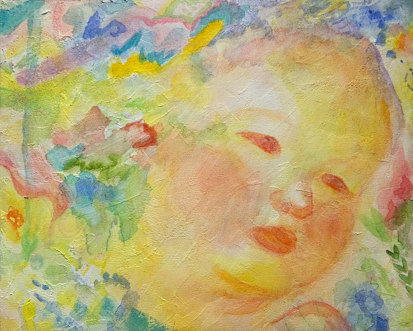 水彩のやわらかさと赤ちゃんを組み合わせた。